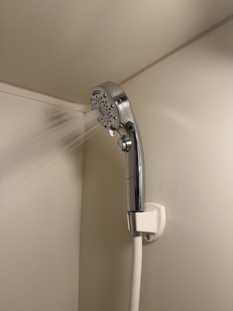 同じタイミングで、もう一つ新しいものが届いた。シャワーヘッドだ。ユニットバスの不便さを解消するための相棒だ。 カーテン越しに手を伸ばして蛇口を捻る手間を省くために「手元スイッチ」付きを選んだのだが、いざ設置してみると角度が合わず、顔面にお湯が直撃するという小さなハプニングに見舞われている。